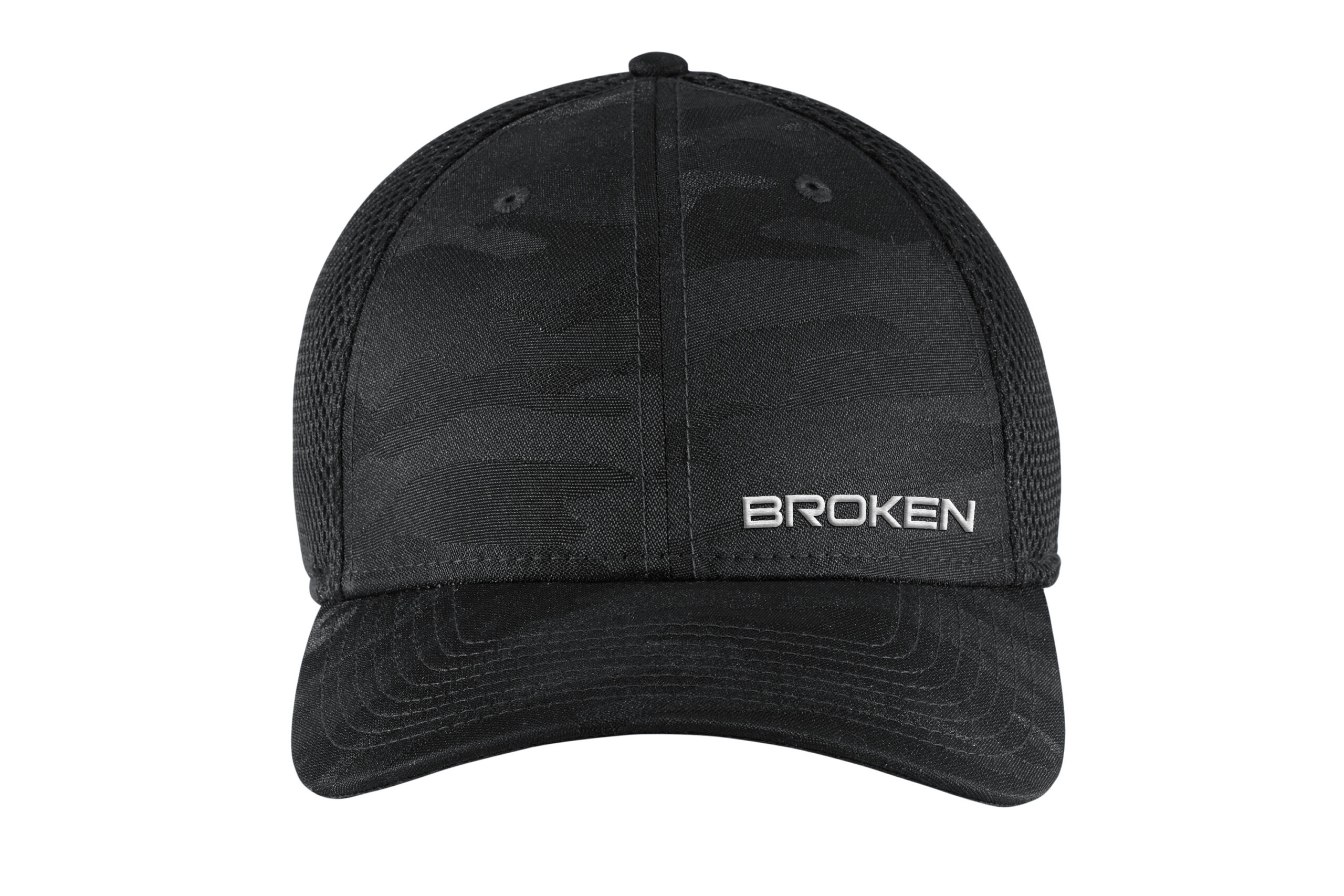 100% polyester mid and back panels, 7-position adjustable snap closure.